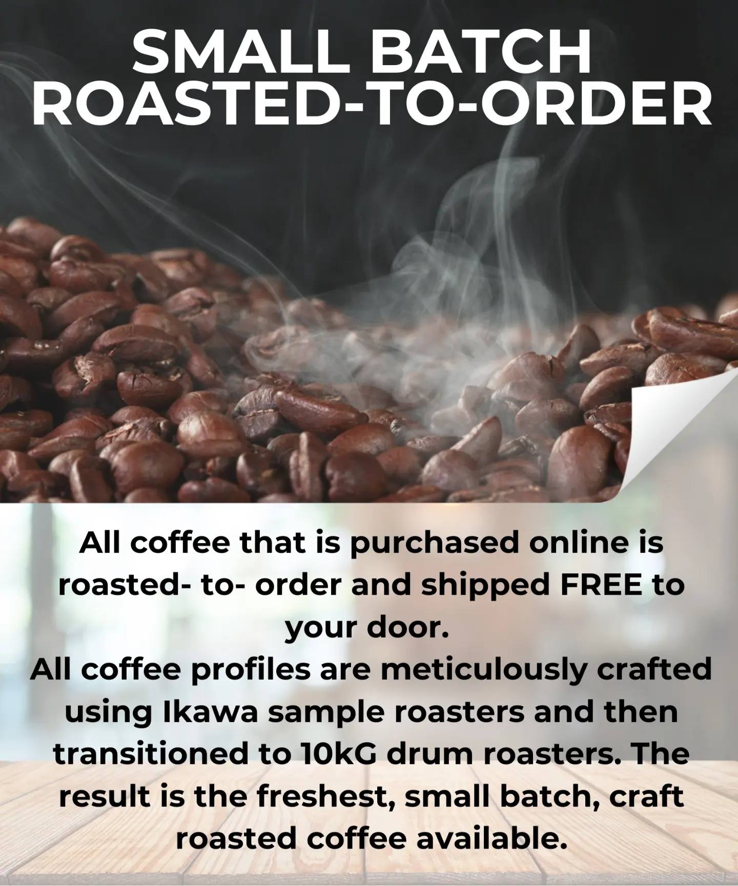 Roasted-to-Order, specialty grade coffee and arriving to you at the peak of its flavor!